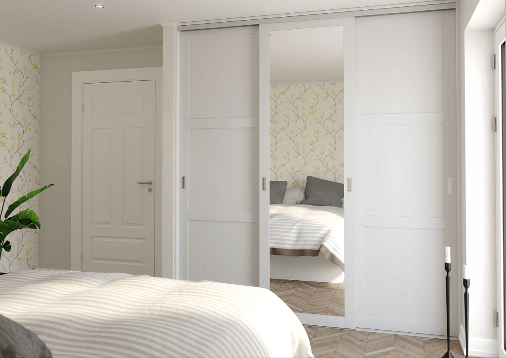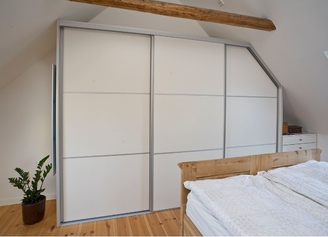 Hos SK Boligtilbehør tilbyder vi skydeskabe/garderobeskabe på ønsket mål.